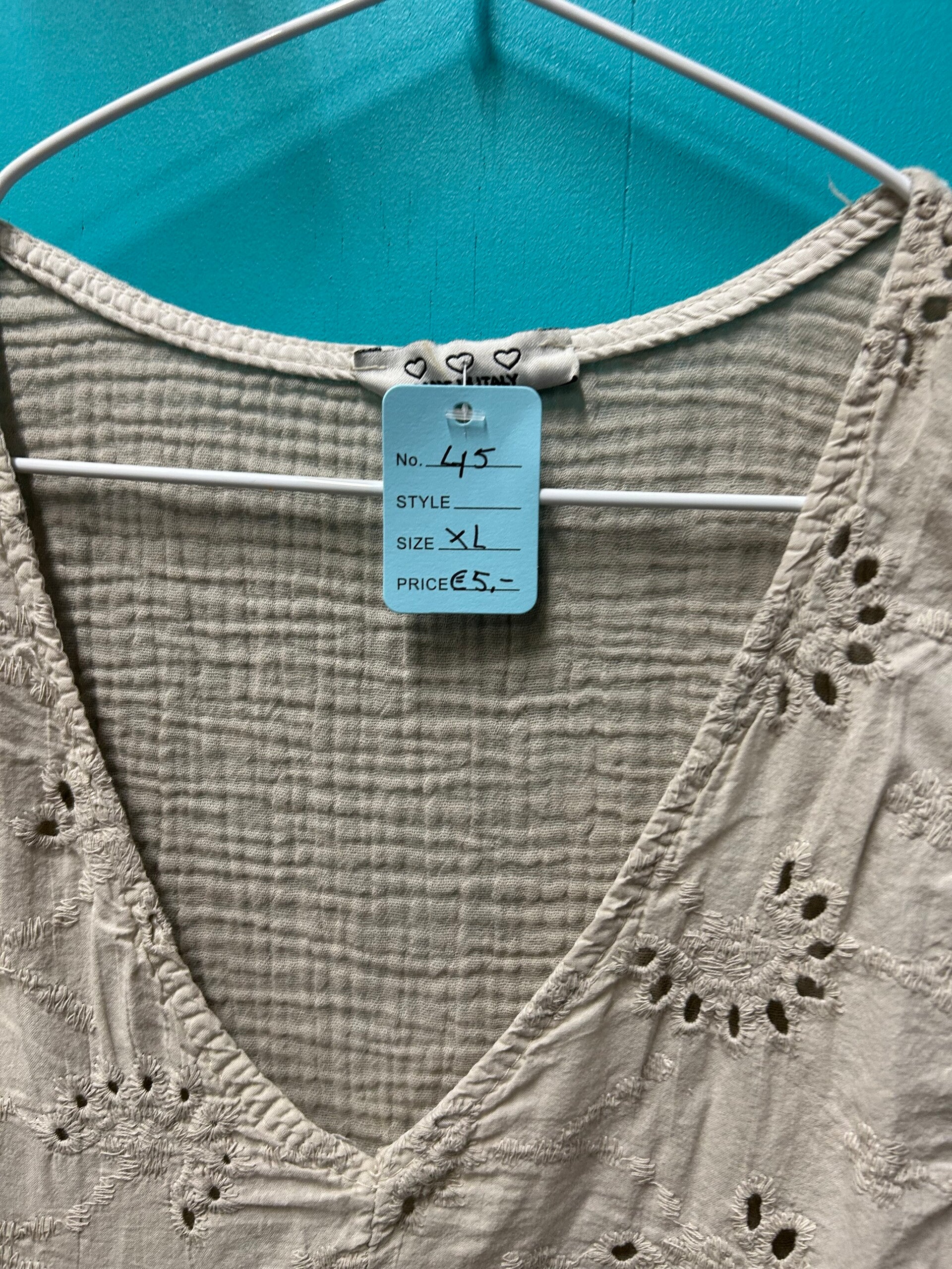 zandkleurig tuniek blouse v hals korte mouw.