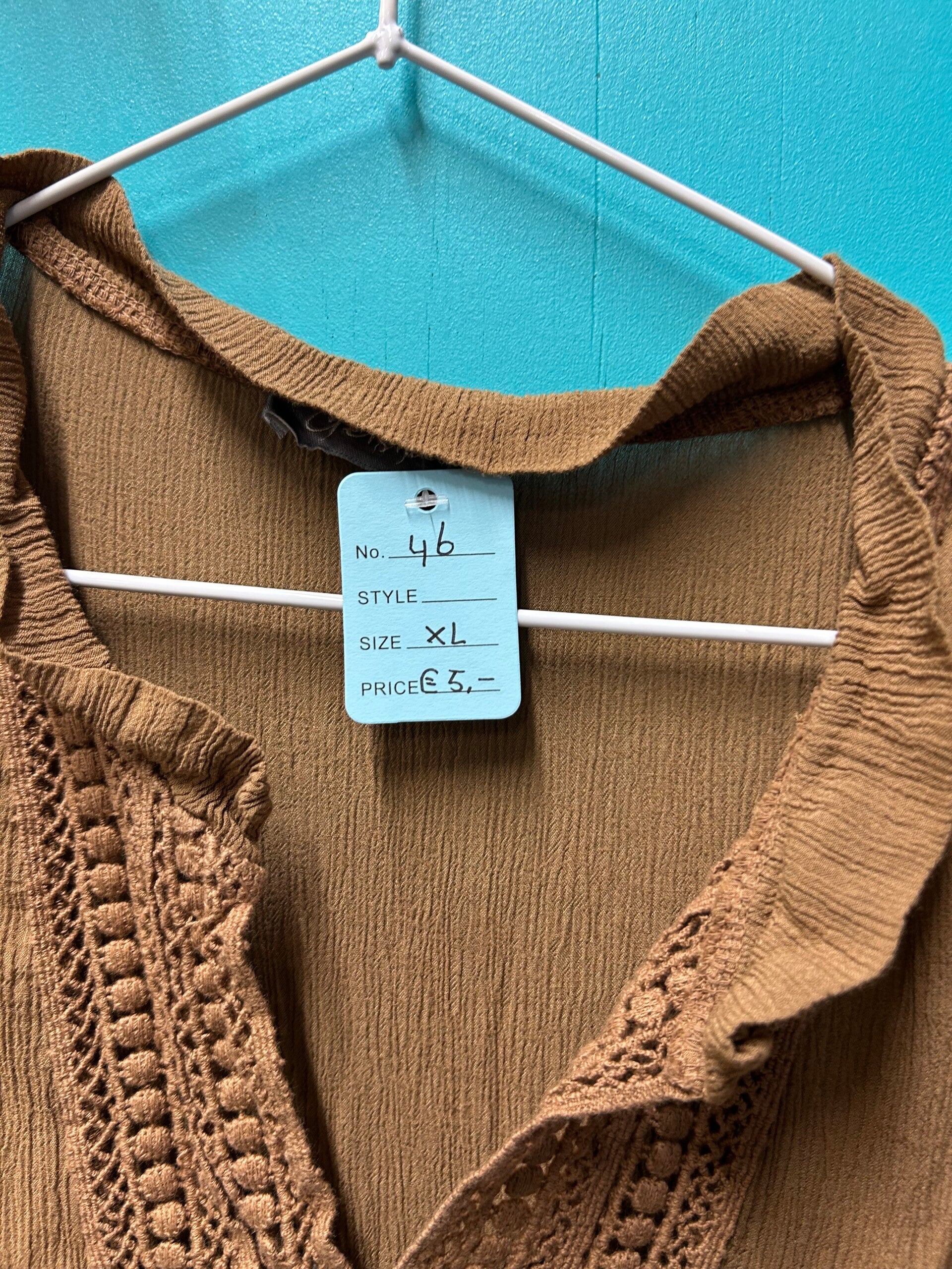 Bruin Blousje met broderie mouwloos.