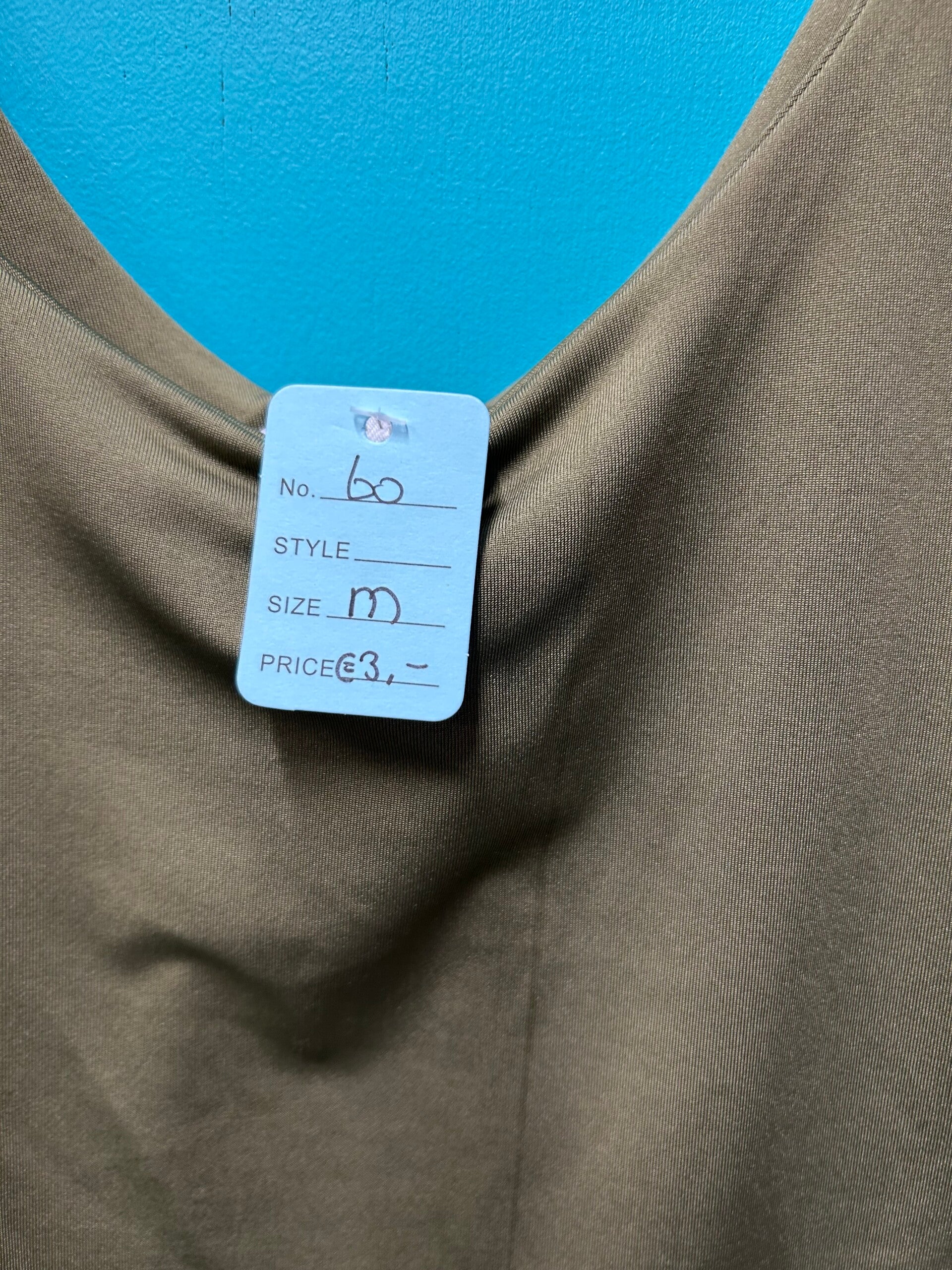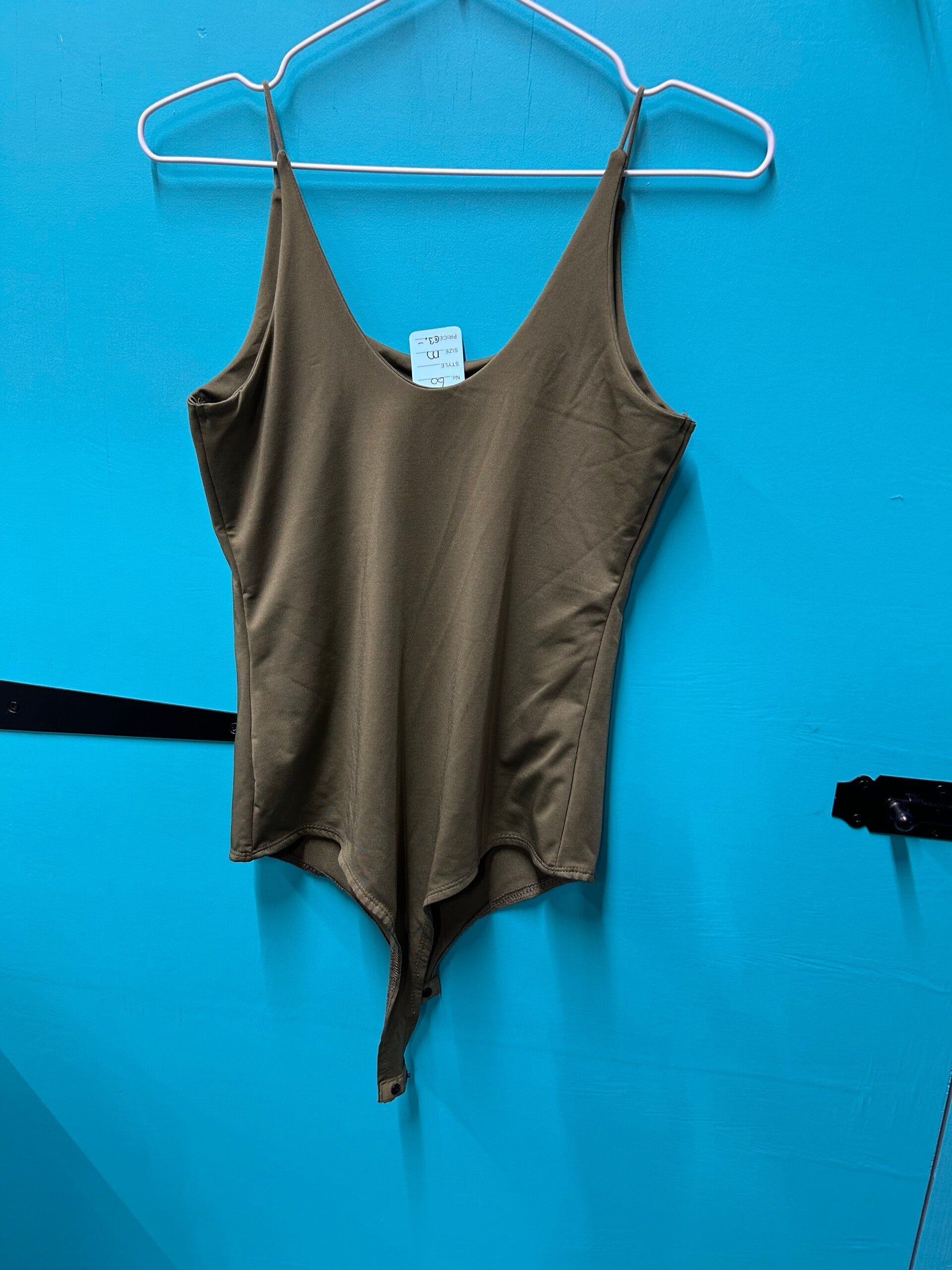 Groene string body met spagettie bandjes.